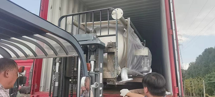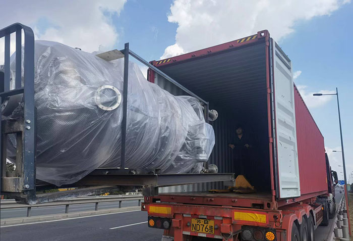 昨天是漢隆員工非常興奮的一天,因為這一天雙效濃縮鍋這款設(shè)備已經(jīng)順利完工,并且已經(jīng)完成裝車,發(fā)往美麗的北非-阿爾及利亞。大家伙辛苦數(shù)天的成果也即將接受阿爾及利亞客戶的檢閱,此刻大家的心情是緊張的,激動的,更是自信的。