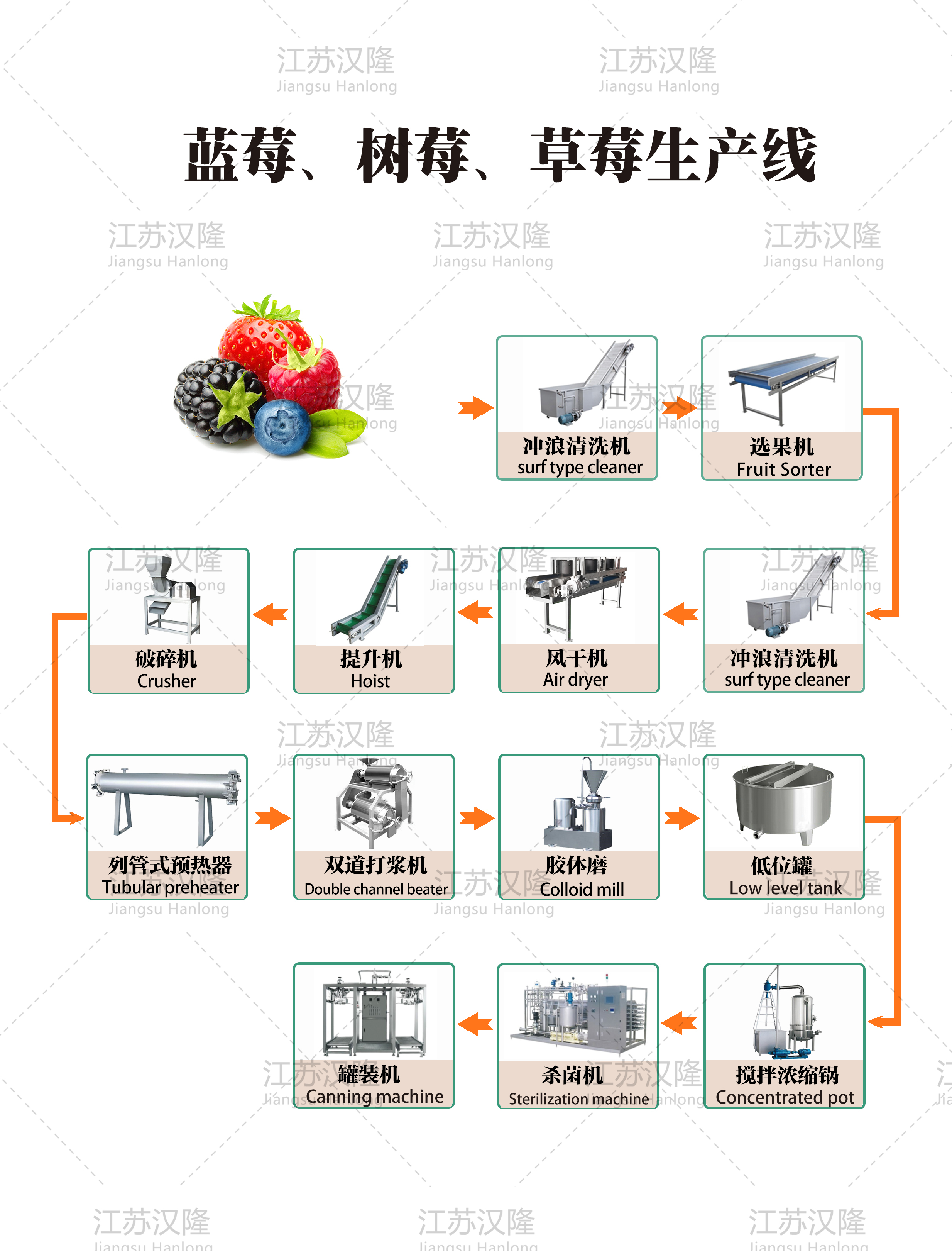 藍(lán)莓、樹莓、草莓飲料生產(chǎn)線介紹: