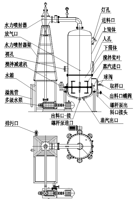 該設(shè)備為單效間息式真空濃縮設(shè)備,適用于熱敏性物料(如果醬、果漿等流動性較差的物料)在真空低溫條件下帶攪拌濃縮,達(dá)到濃縮果裝、果醬的效果。