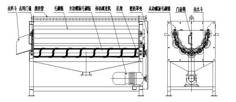 該毛刷去皮清洗機主要由機架、傳動減速機、鏈輪罩殼、噴淋管、毛刷輥、出水斗、出料門蓋、出料斗、門蓋插銷等部件組成。