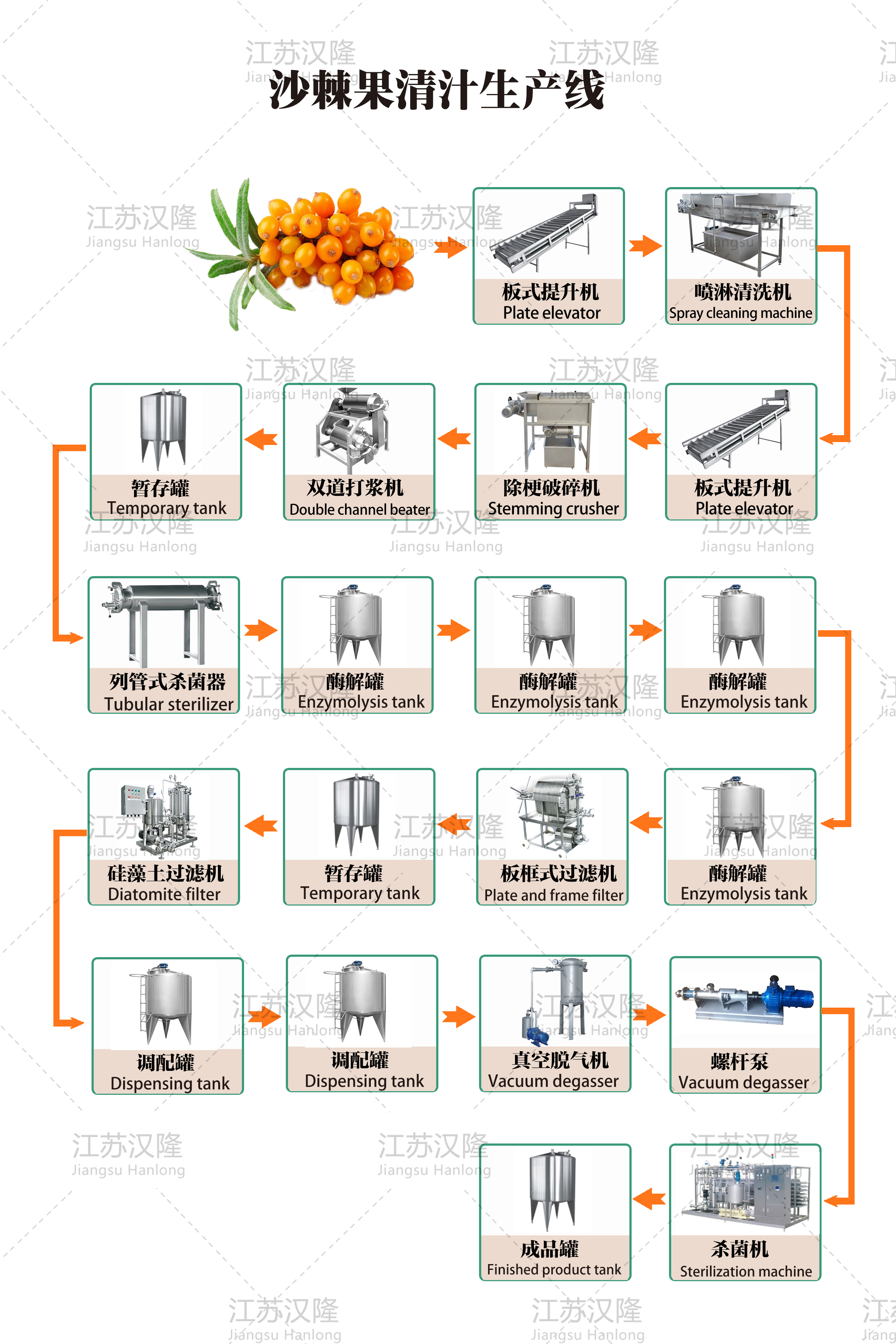 5 除梗破碎:除去沙棘果的柄梗,以免梗中的單寧成分進(jìn)入果汁中,對品質(zhì)帶來不利作用,同時也對沙棘果進(jìn)行預(yù)破碎便于輸送。