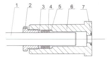 1.柱塞 2. 緊定螺釘 3.壓環(huán) 4.柱塞密封圈 (V型或方型、隔離片)5.定位套、墊環(huán) 6. 柱塞密封套 7.密封圈