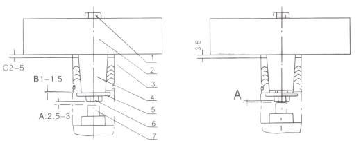 檢查圓柱面須光滑無(wú)劃痕毛刺.按(圖6)V型密封組件下端面應(yīng)高于圓錐柱下端面B1-1.5mm左右.